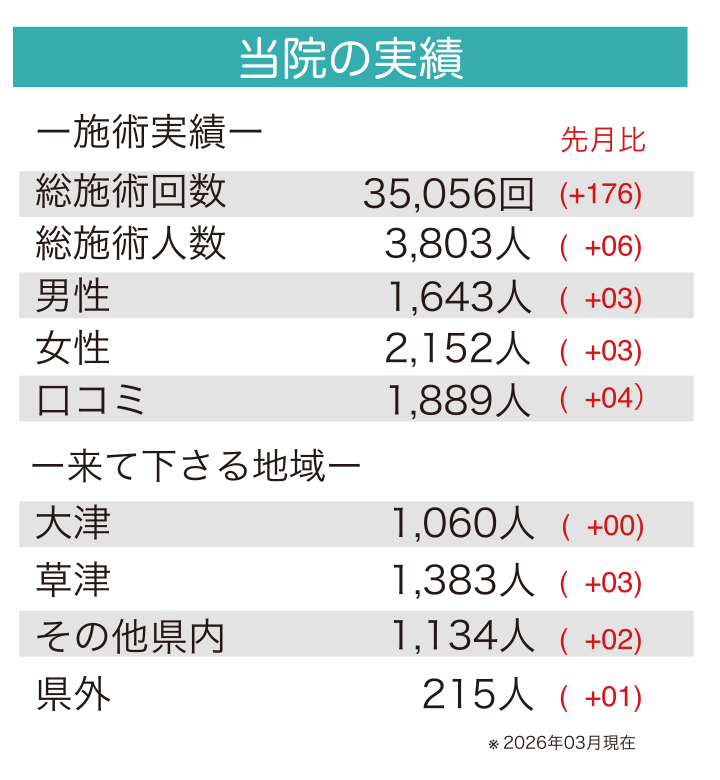 当院の施術の実績を毎月お知らせしております。